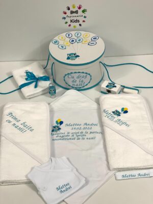 TRUSOUL BEBELUSULUI poate fi personalizat cu numele, data botezului si chiar cu tema aleasa de tine!