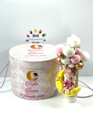 Lumânareapoate fi personalizată cu numele, data botezului si chiar cu tema aleasa de tine!