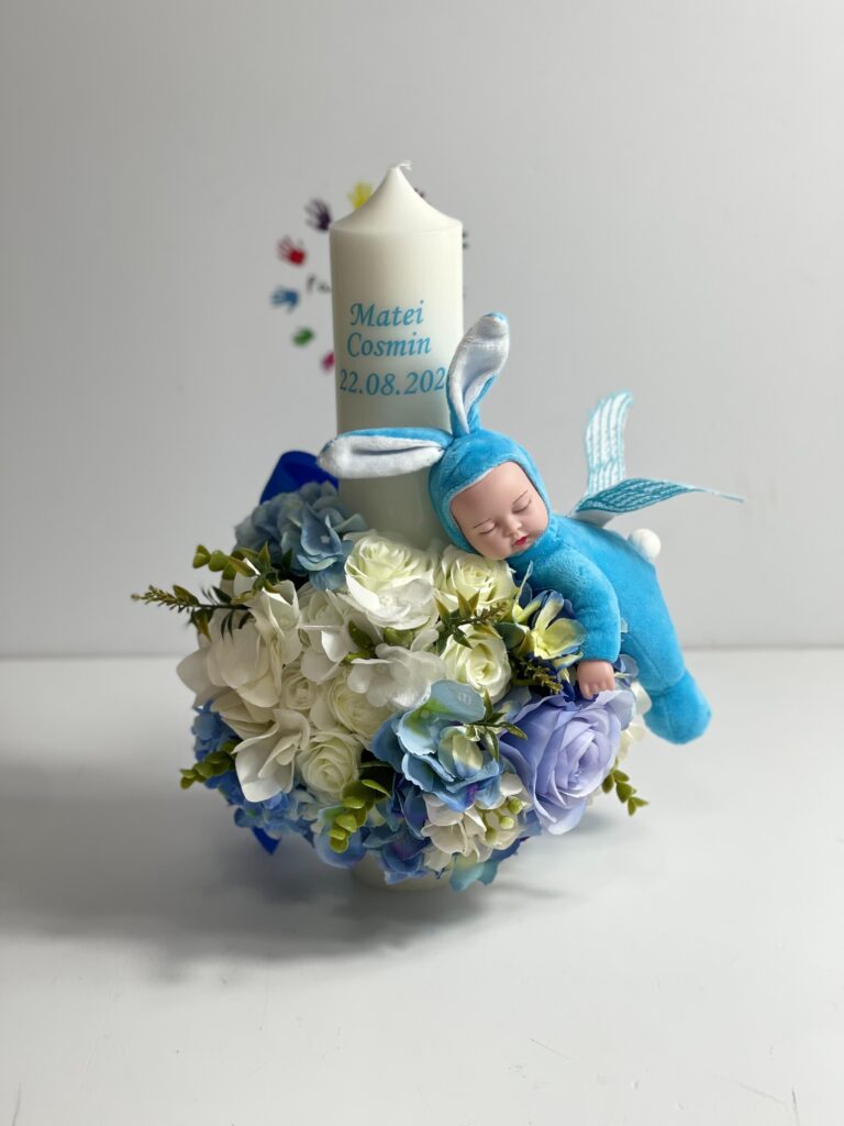 Lumânareapoate fi personalizată cu numele, data botezului si chiar cu tema aleasa de tine!