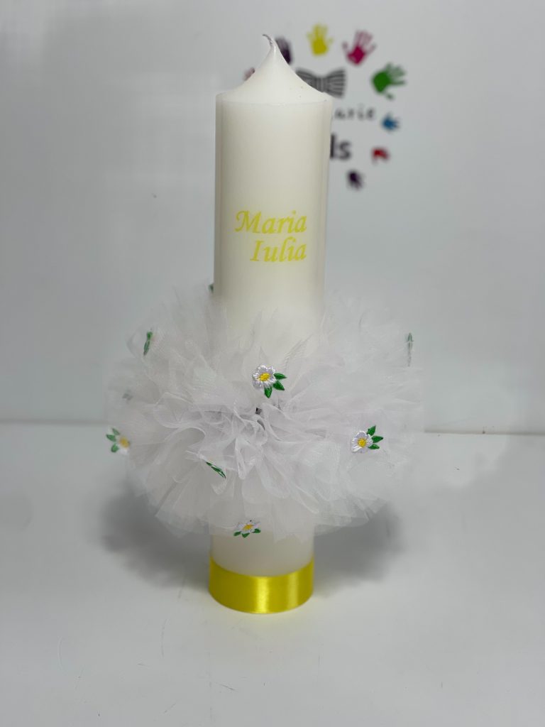 Lumânareapoate fi personalizată cu numele, data botezului si chiar cu tema aleasa de tine!