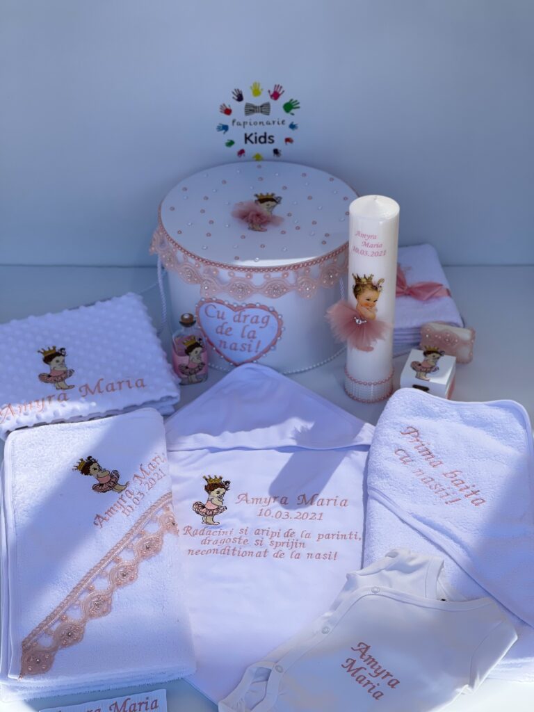 TRUSOUL BEBELUSULUI poate fi personalizat cu numele, data botezului si chiar cu tema aleasa de tine!