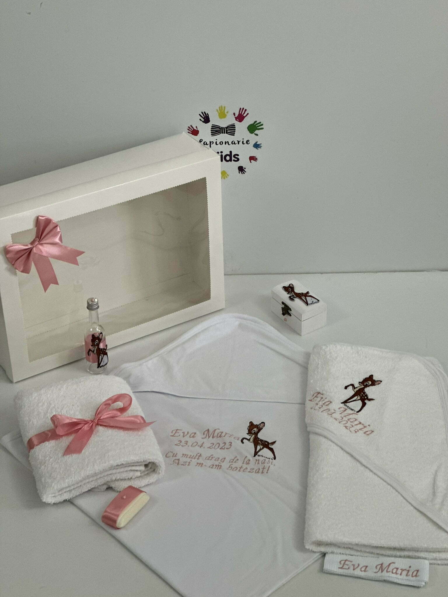 TRUSOUL BEBELUSULUI poate fi personalizat cu numele, data botezului si chiar cu tema aleasa de tine!