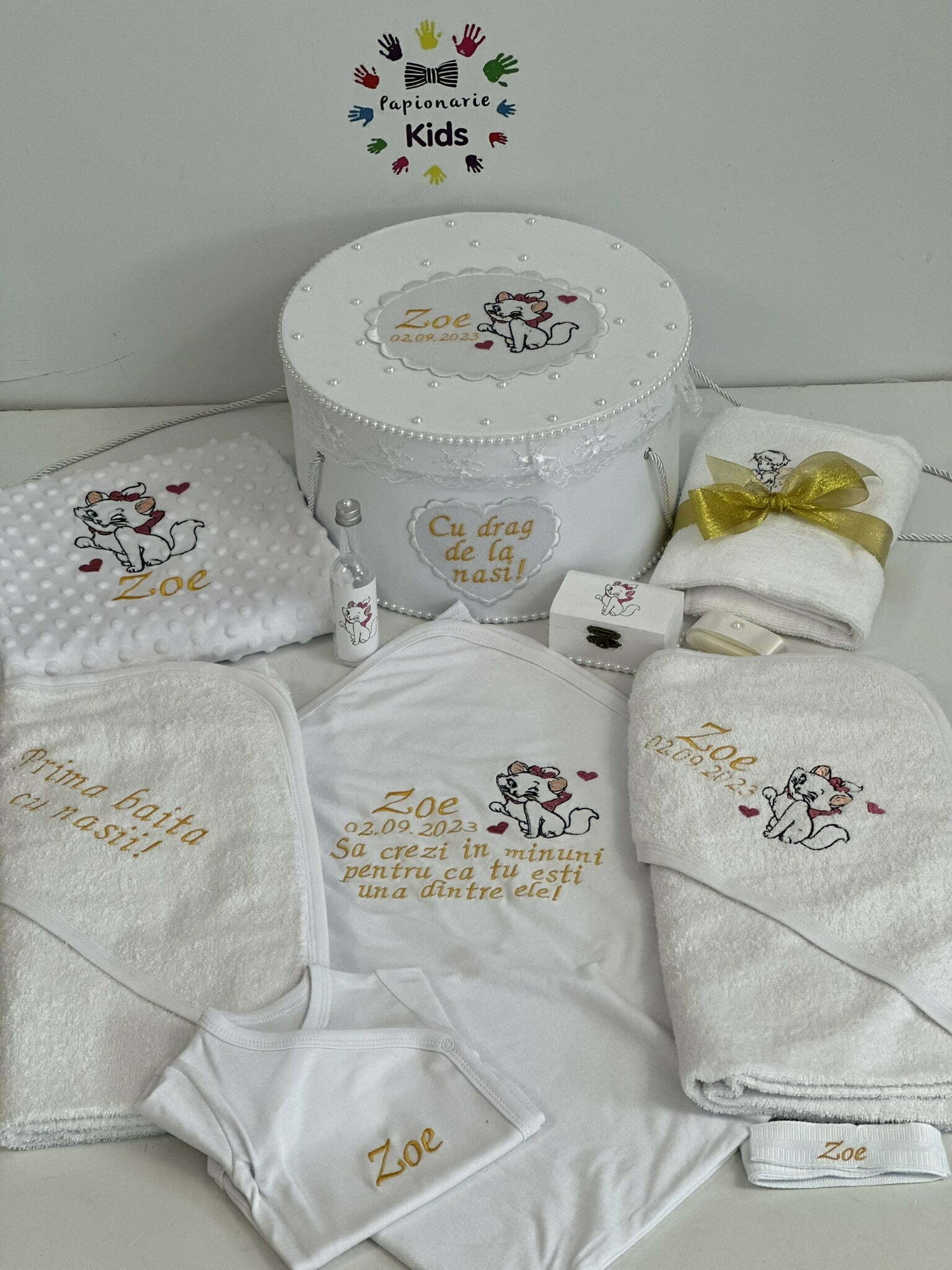 TRUSOUL BEBELUSULUI poate fi personalizat cu numele, data botezului si chiar cu tema aleasa de tine!