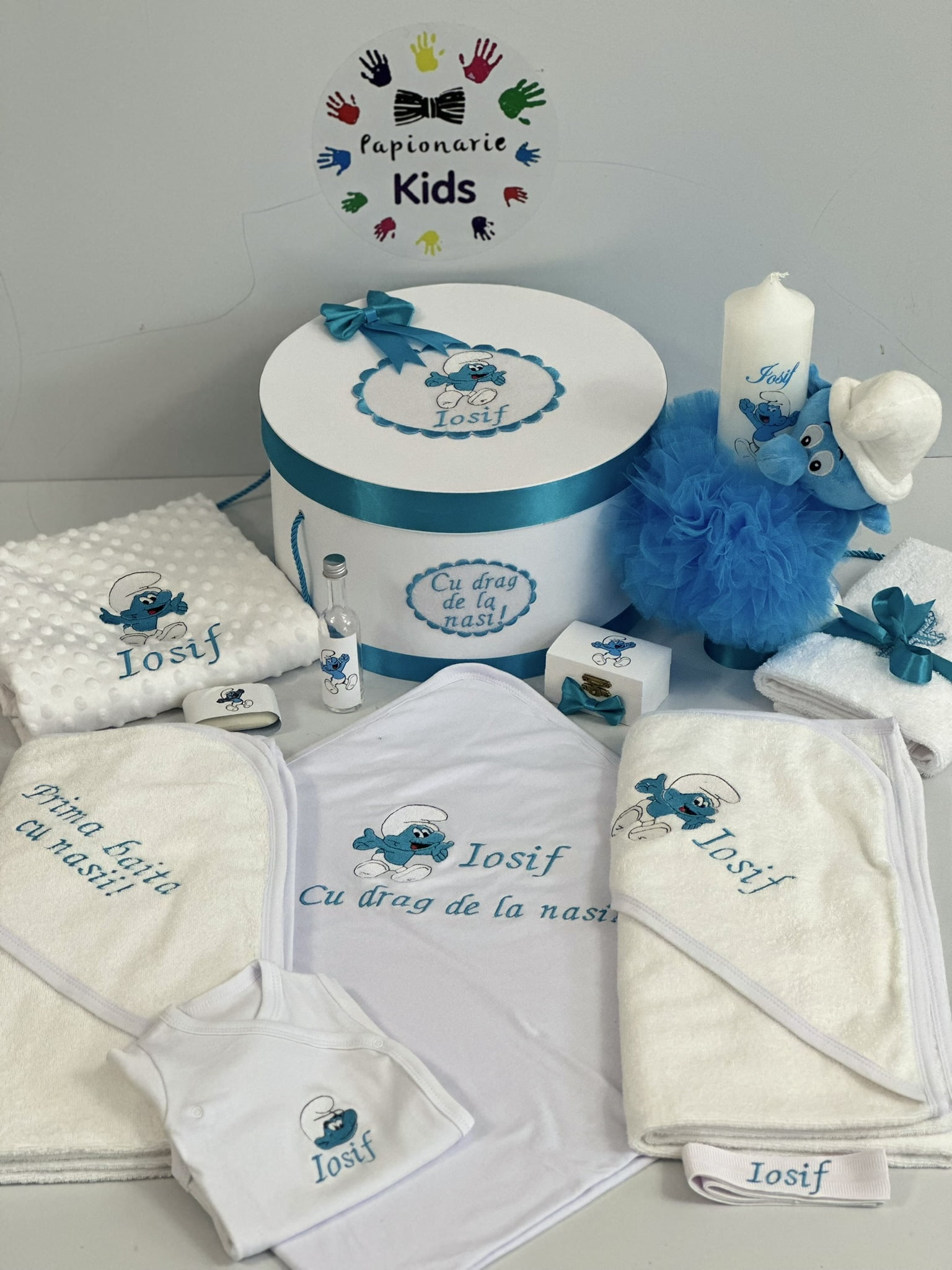 TRUSOUL BEBELUSULUI poate fi personalizat cu numele, data botezului si chiar cu tema aleasa de tine!