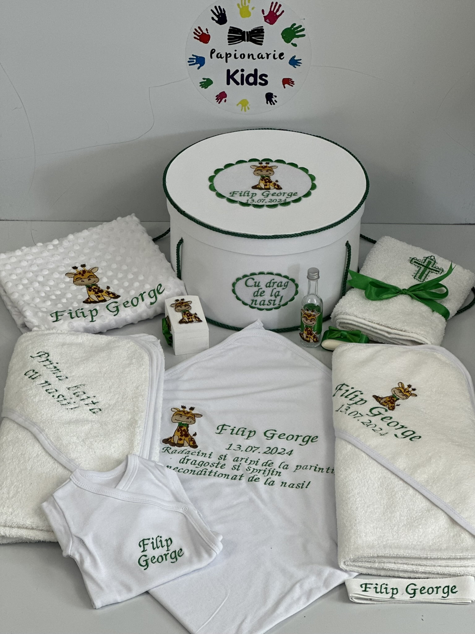 TRUSOUL BEBELUSULUI poate fi personalizat cu numele, data botezului si chiar cu tema aleasa de tine!