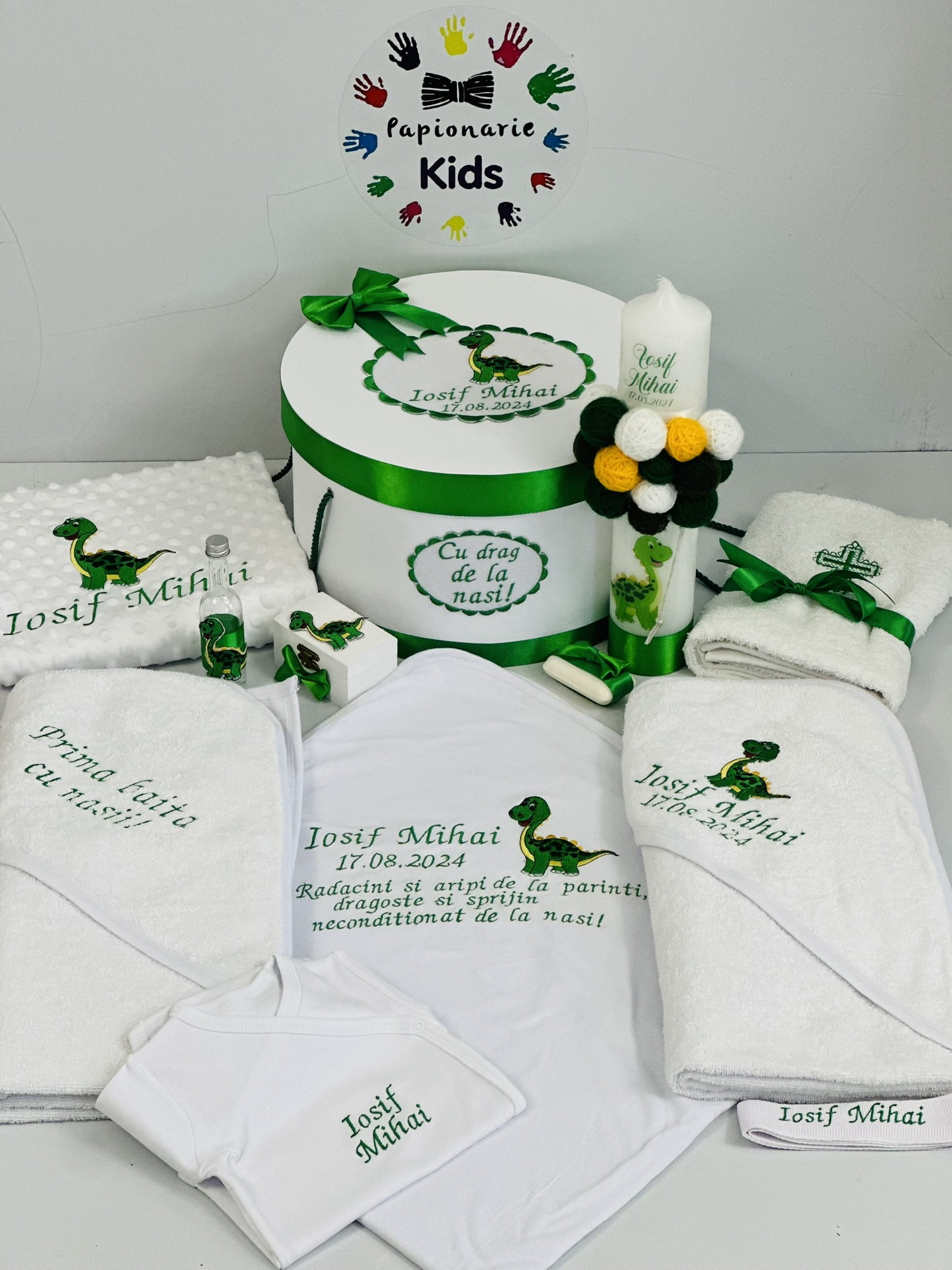TRUSOUL BEBELUSULUI poate fi personalizat cu numele, data botezului si chiar cu tema aleasa de tine!