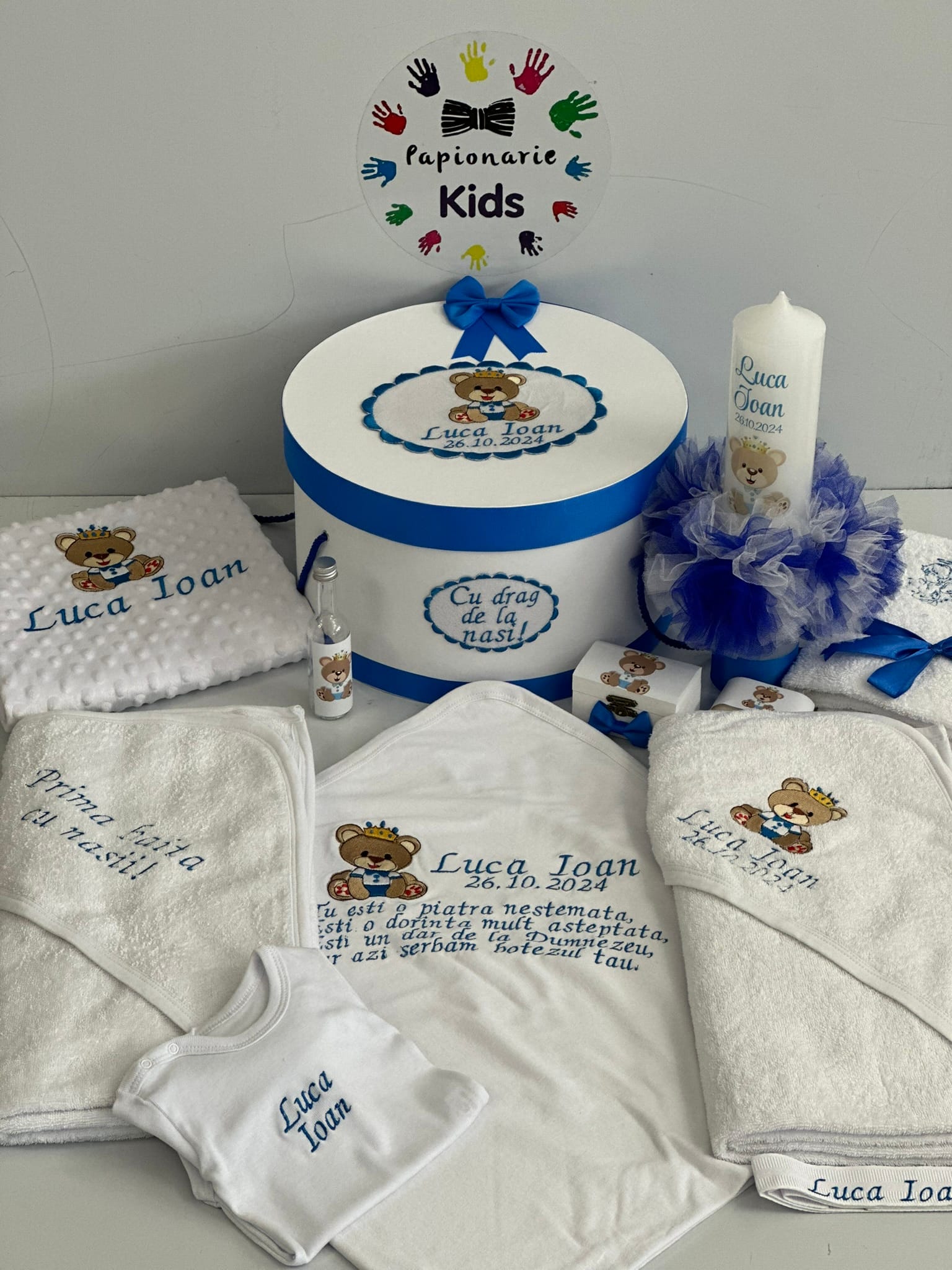 TRUSOUL BEBELUSULUI poate fi personalizat cu numele, data botezului si chiar cu tema aleasa de tine!