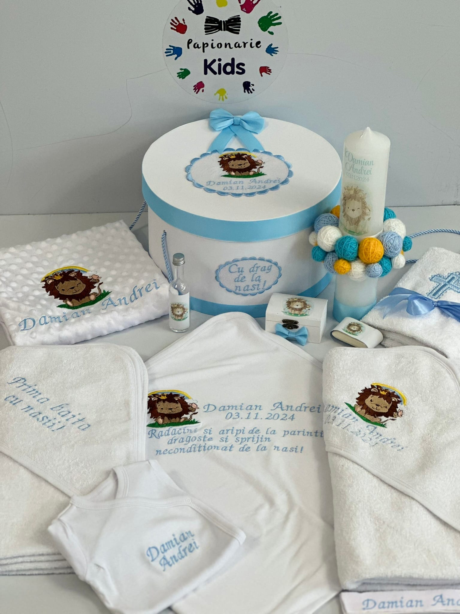 TRUSOUL BEBELUSULUI poate fi personalizat cu numele, data botezului si chiar cu tema aleasa de tine!