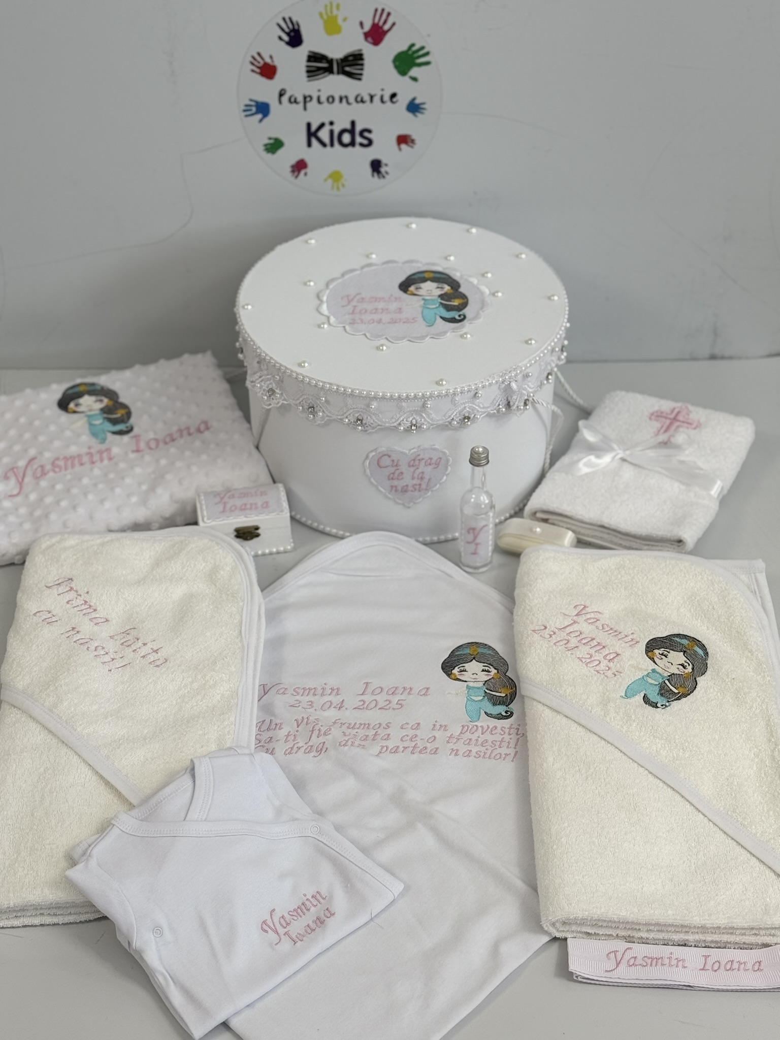 TRUSOUL BEBELUSULUI poate fi personalizat cu numele, data botezului si chiar cu tema aleasa de tine!