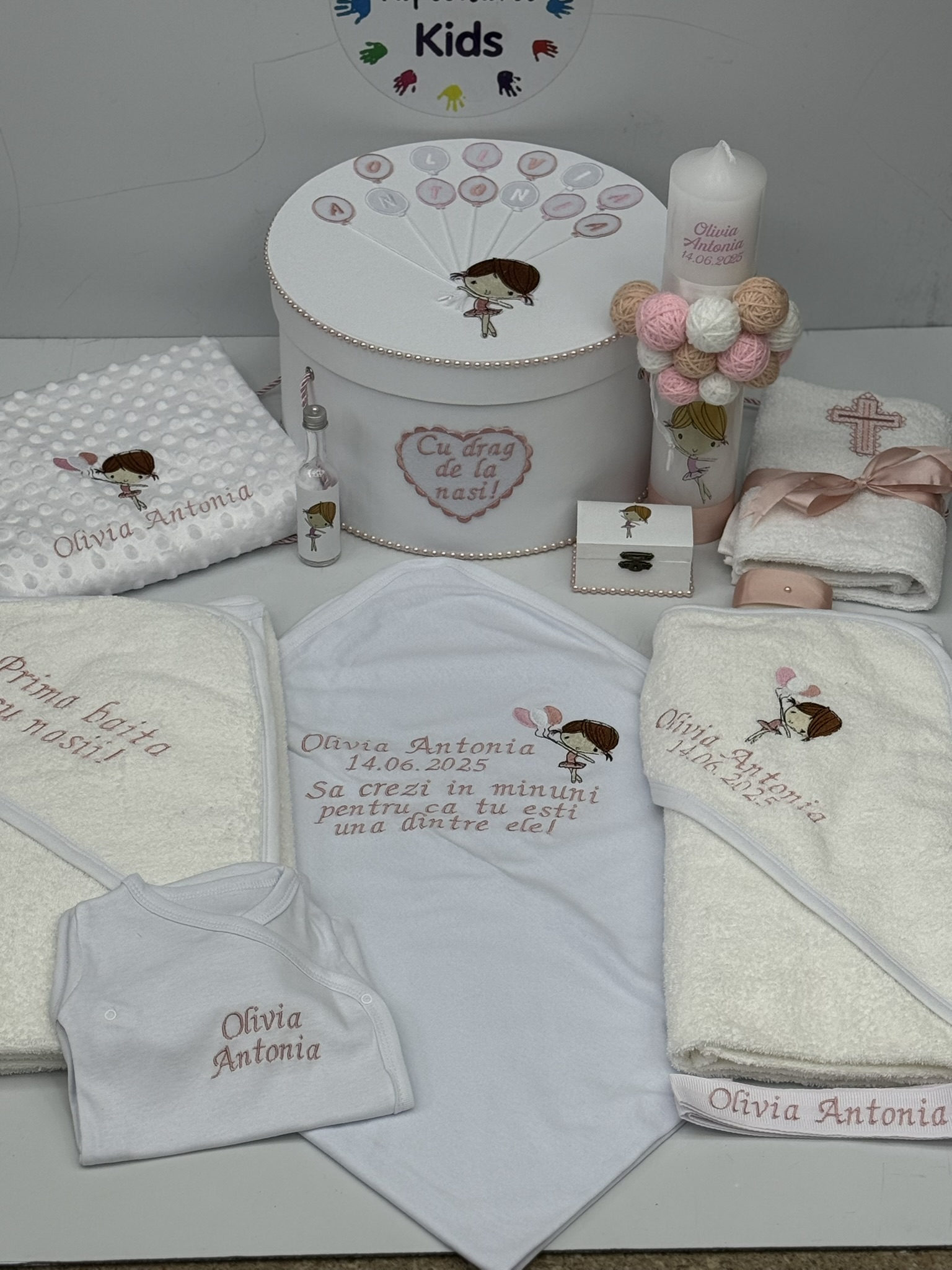 TRUSOUL BEBELUSULUI poate fi personalizat cu numele, data botezului si chiar cu tema aleasa de tine!