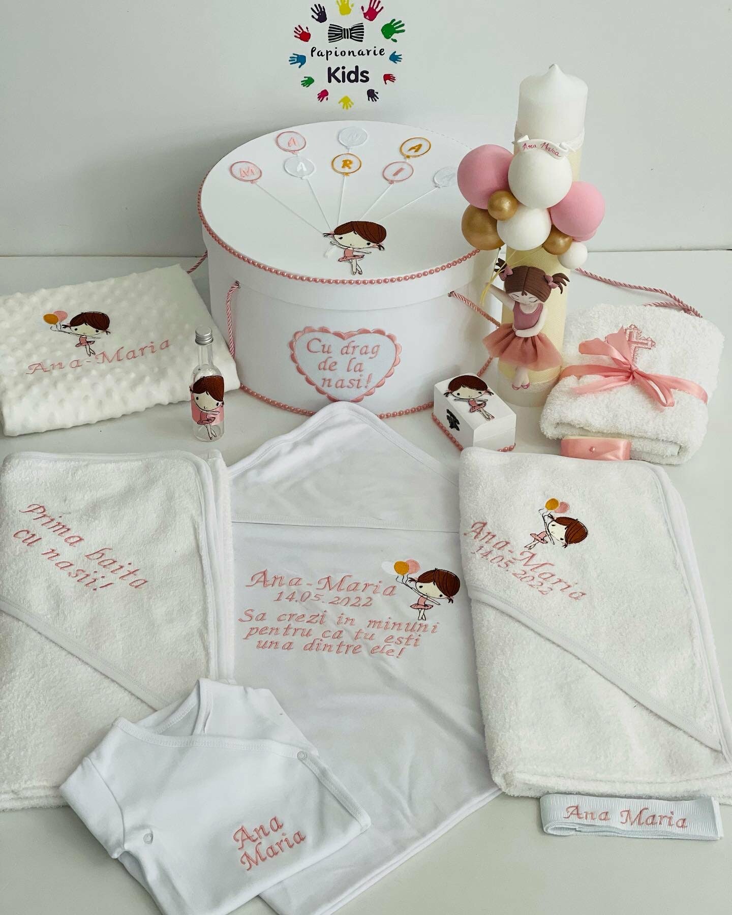 TRUSOUL BEBELUSULUI poate fi personalizat cu numele, data botezului si chiar cu tema aleasa de tine!