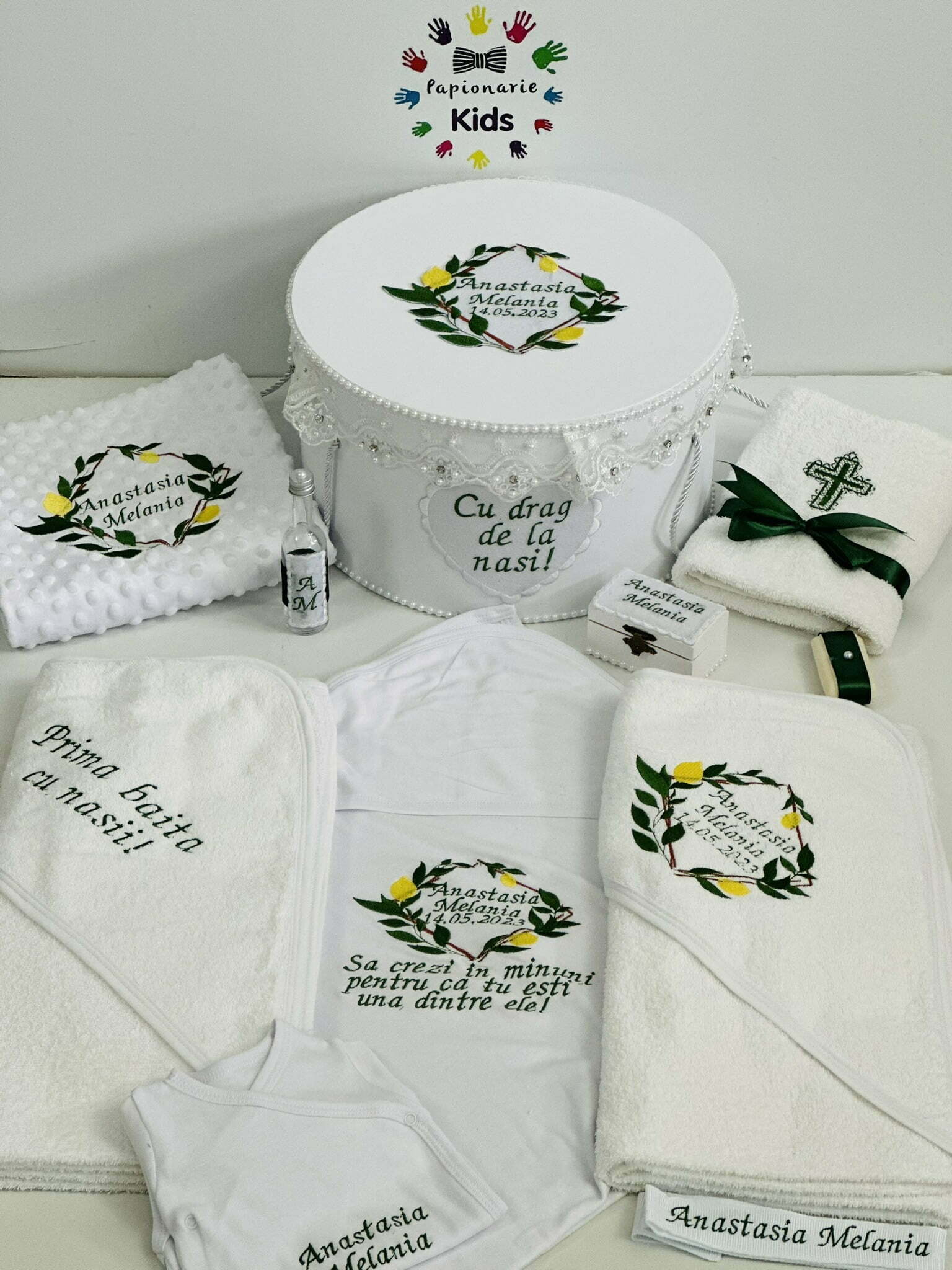 TRUSOUL BEBELUSULUI poate fi personalizat cu numele, data botezului si chiar cu tema aleasa de tine!