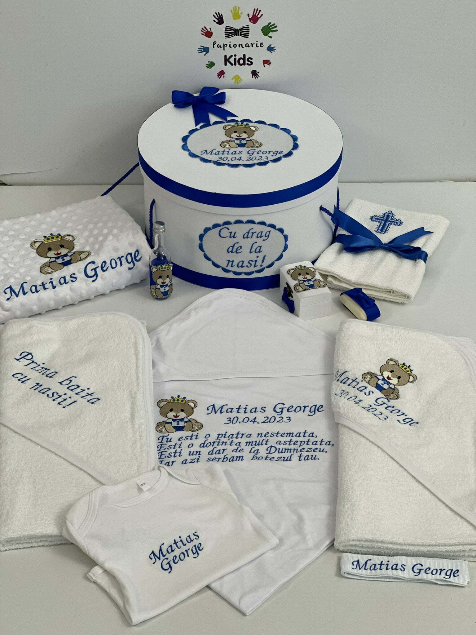 TRUSOUL BEBELUSULUI poate fi personalizat cu numele, data botezului si chiar cu tema aleasa de tine!