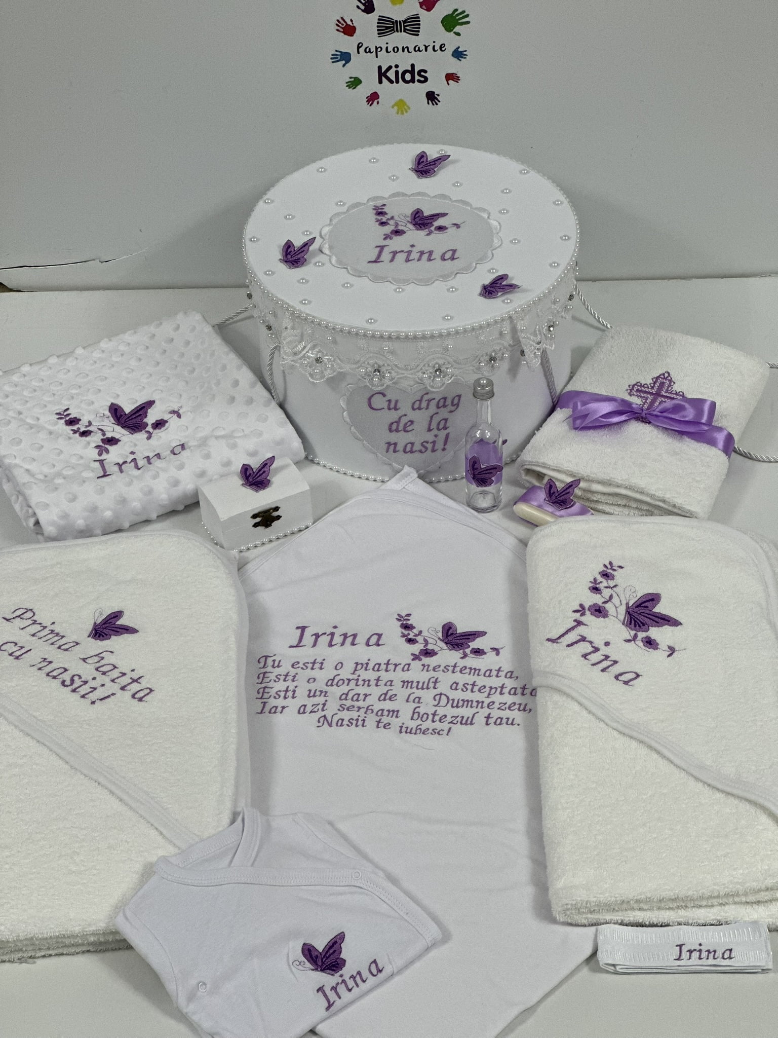 TRUSOUL BEBELUSULUI poate fi personalizat cu numele, data botezului si chiar cu tema aleasa de tine!