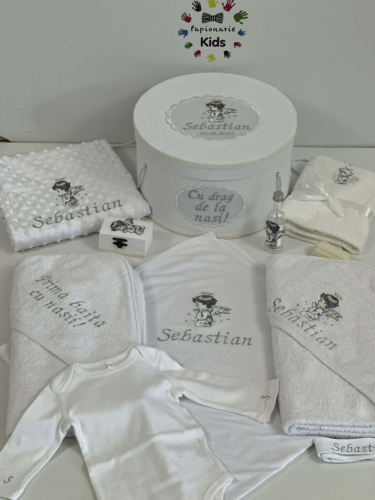 TRUSOUL BEBELUSULUI poate fi personalizat cu numele, data botezului si chiar cu tema aleasa de tine!