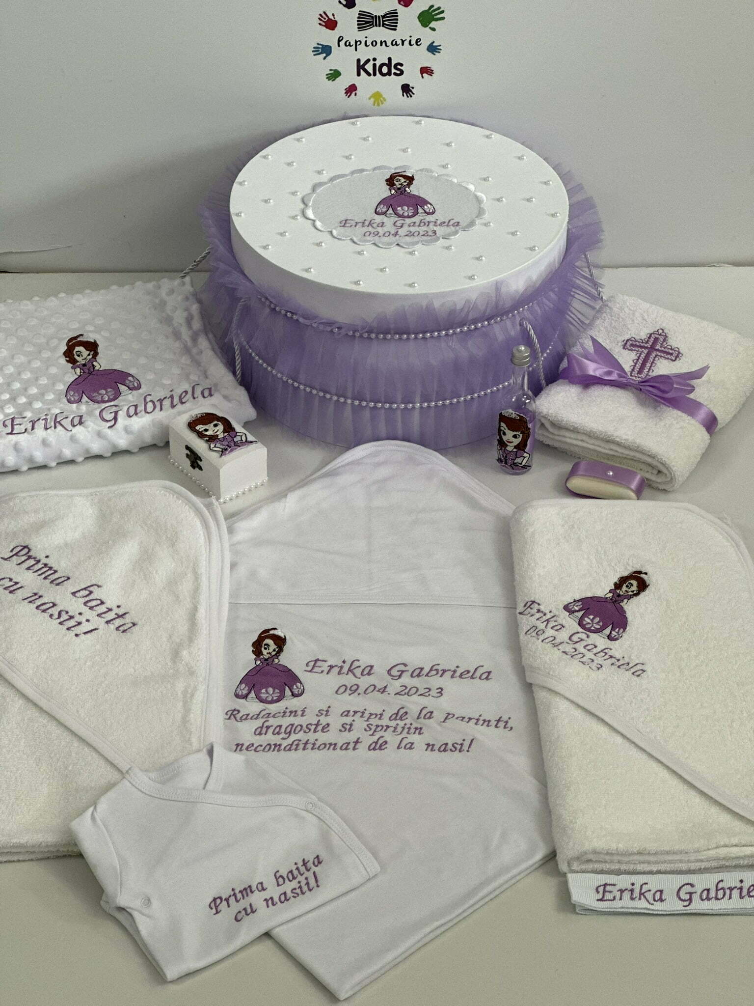TRUSOUL BEBELUSULUI poate fi personalizat cu numele, data botezului si chiar cu tema aleasa de tine!