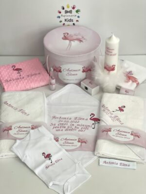 Categorii: Diamond, Fetițe Etichete: trusou, trusou botez, trusou botez fettita, trusou flamingo