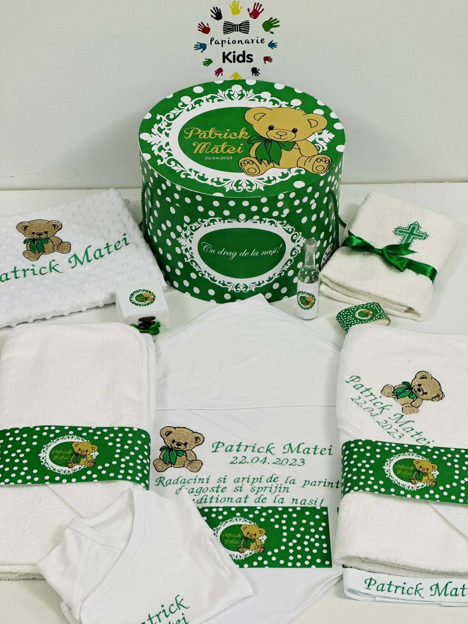 TRUSOUL BEBELUSULUI poate fi personalizat cu numele, data botezului si chiar cu tema aleasa de tine!