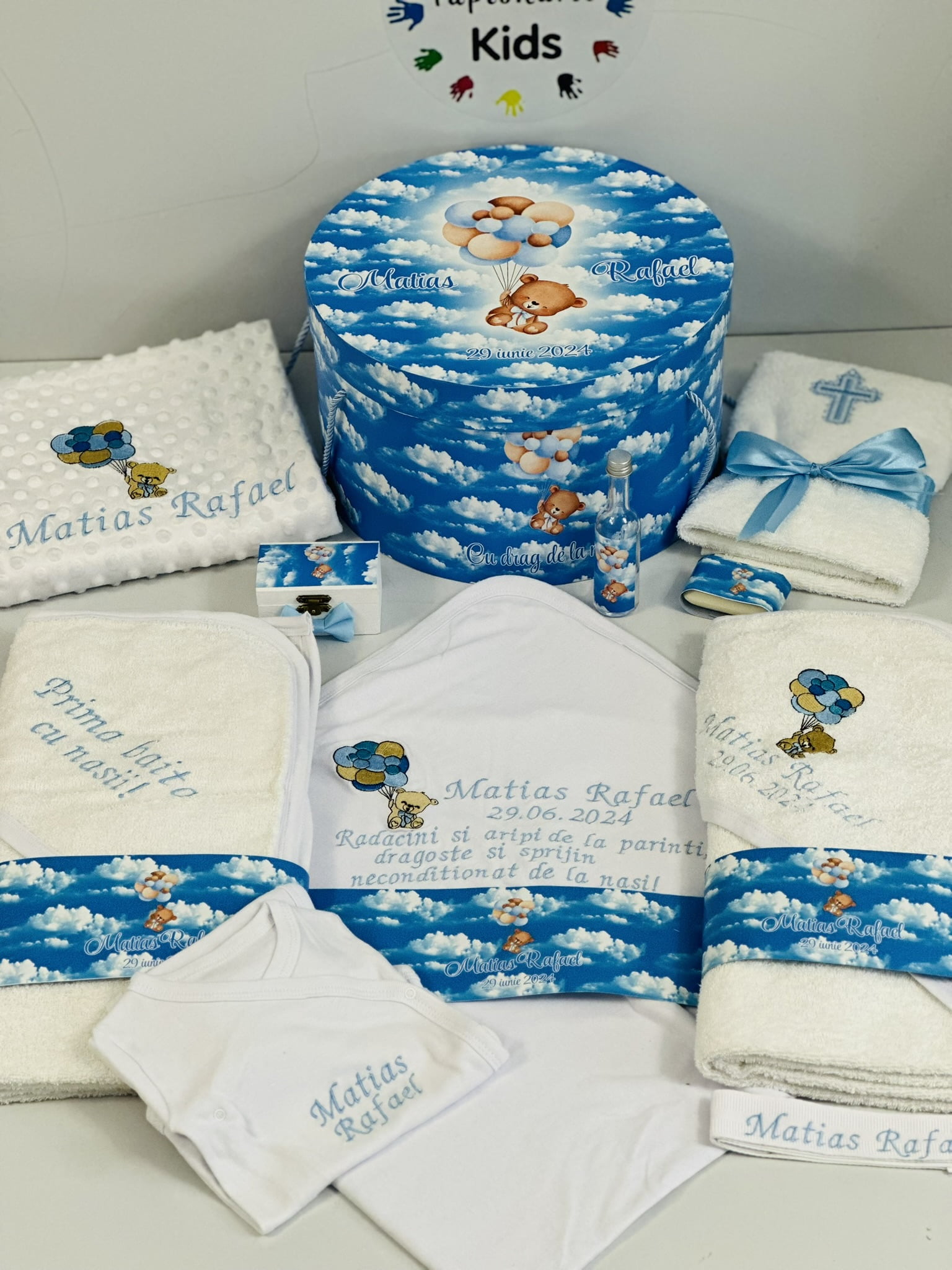 TRUSOUL BEBELUSULUI poate fi personalizat cu numele, data botezului si chiar cu tema aleasa de tine!