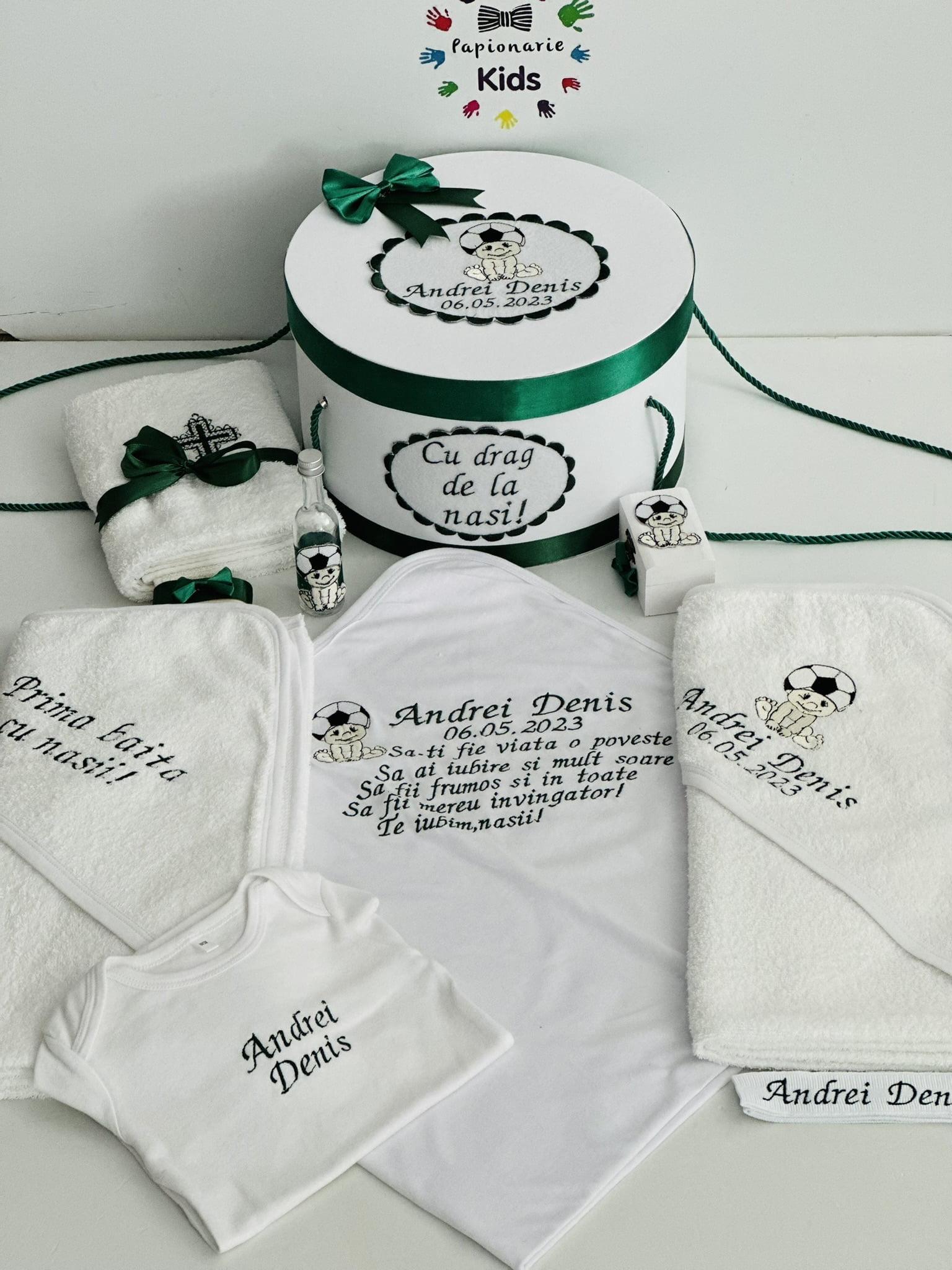 TRUSOUL BEBELUSULUI poate fi personalizat cu numele, data botezului si chiar cu tema aleasa de tine!