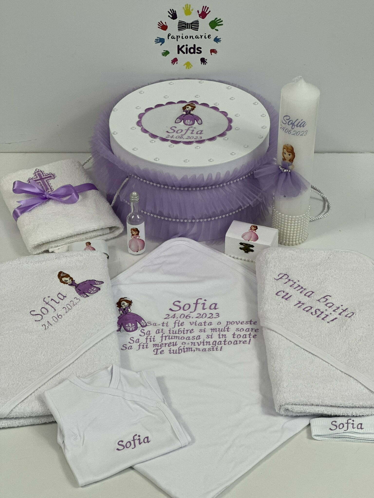 TRUSOUL BEBELUSULUI poate fi personalizat cu numele, data botezului si chiar cu tema aleasa de tine!