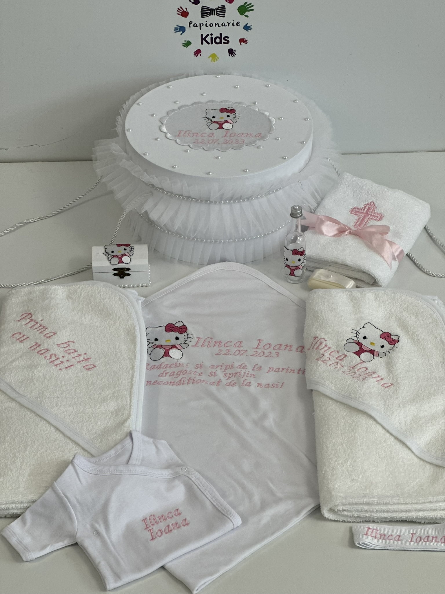 TRUSOUL BEBELUSULUI poate fi personalizat cu numele, data botezului si chiar cu tema aleasa de tine!
