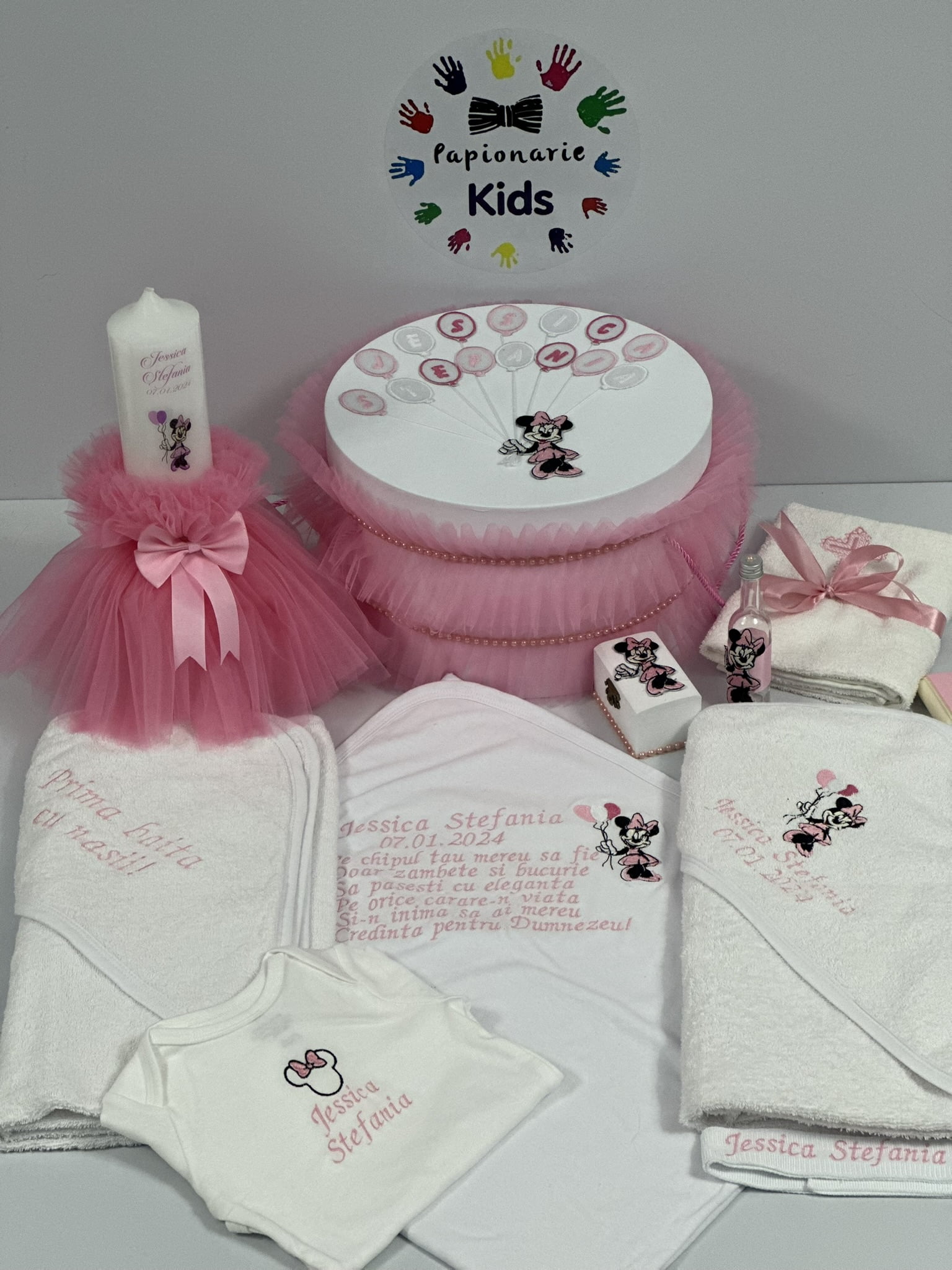 Trusou botez clasic Minnie, 8 piese