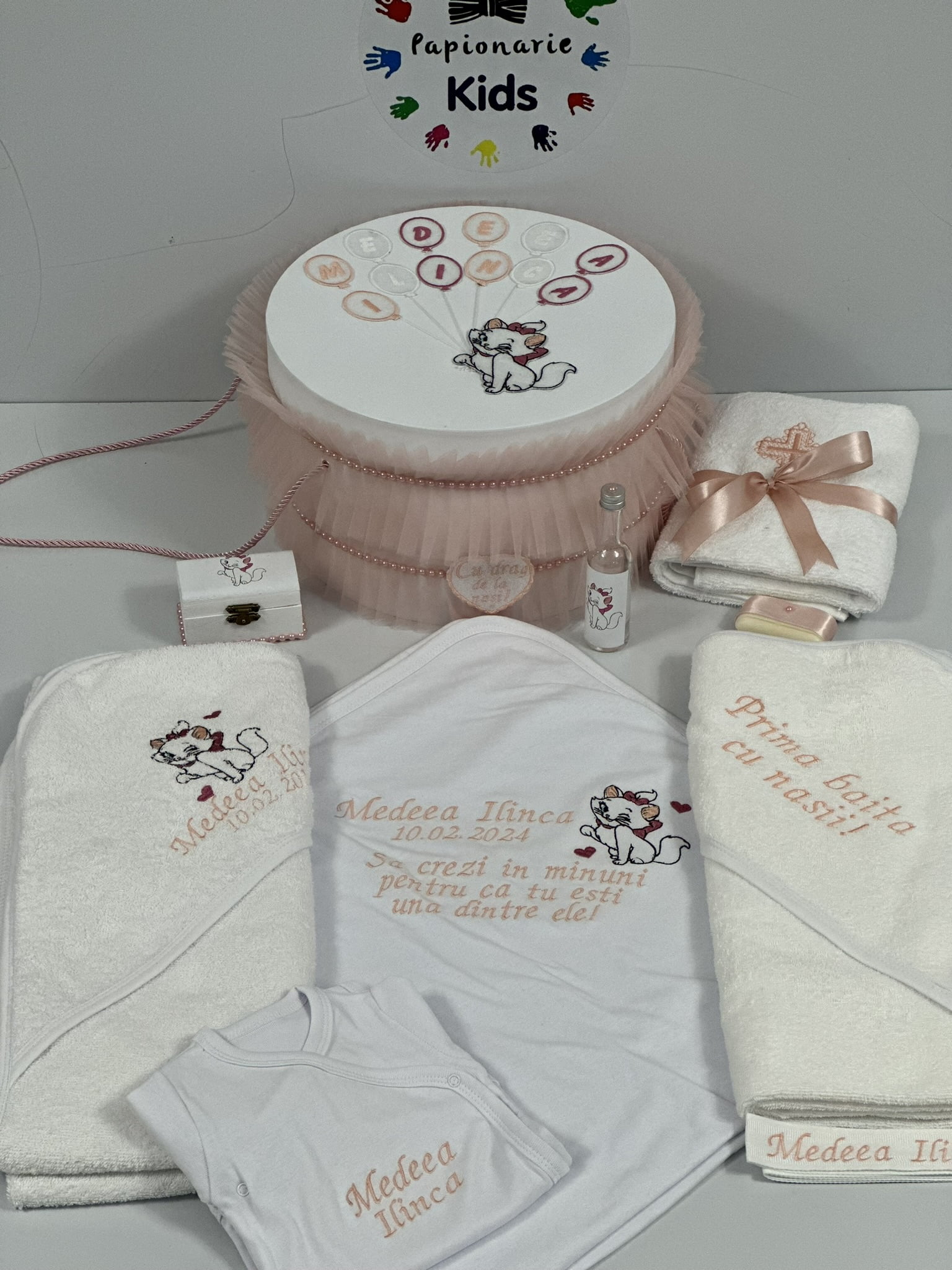 TRUSOUL BEBELUSULUI poate fi personalizat cu numele, data botezului si chiar cu tema aleasa de tine!