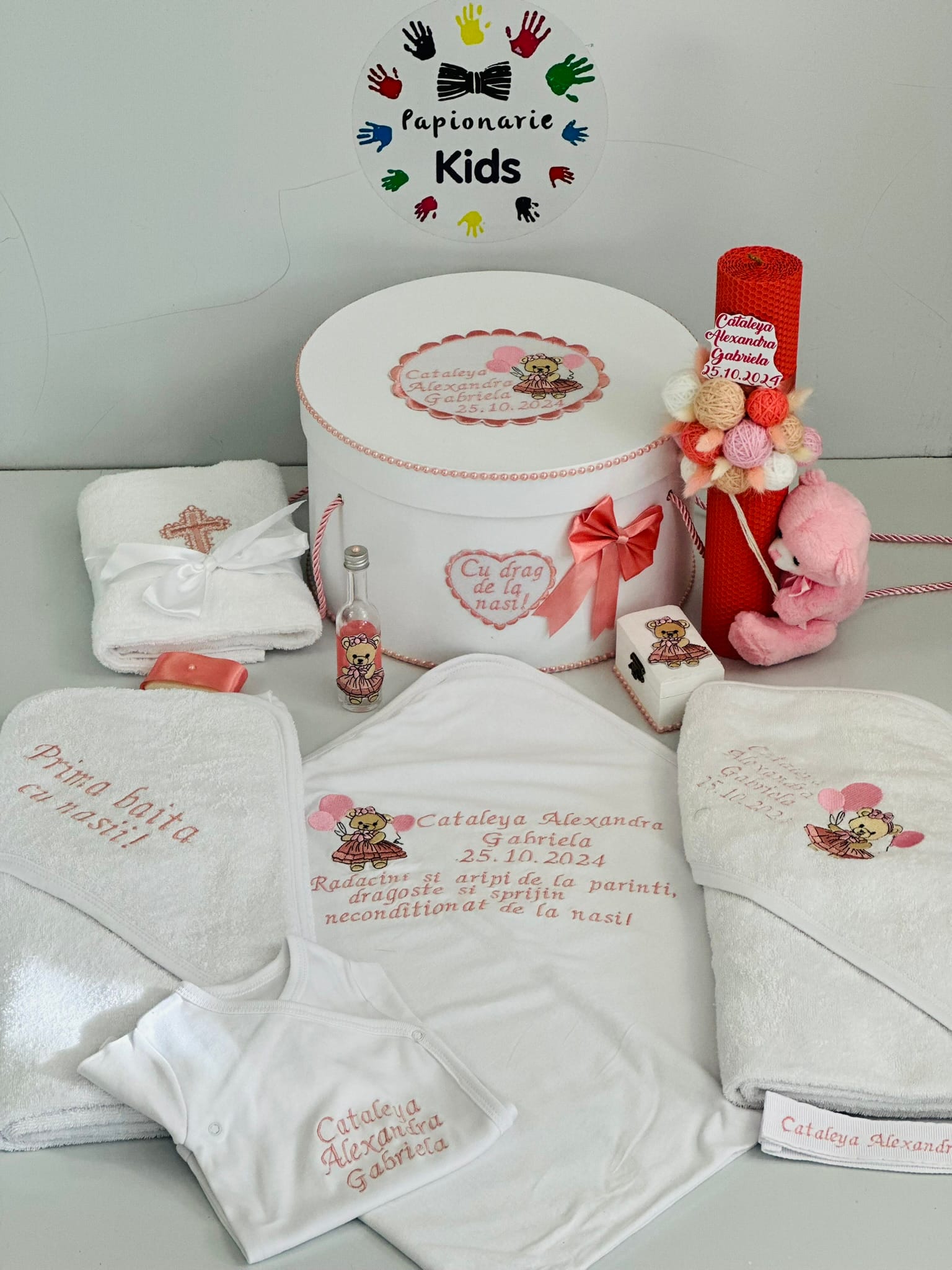 TRUSOUL BEBELUSULUI poate fi personalizat cu numele, data botezului si chiar cu tema aleasa de tine!