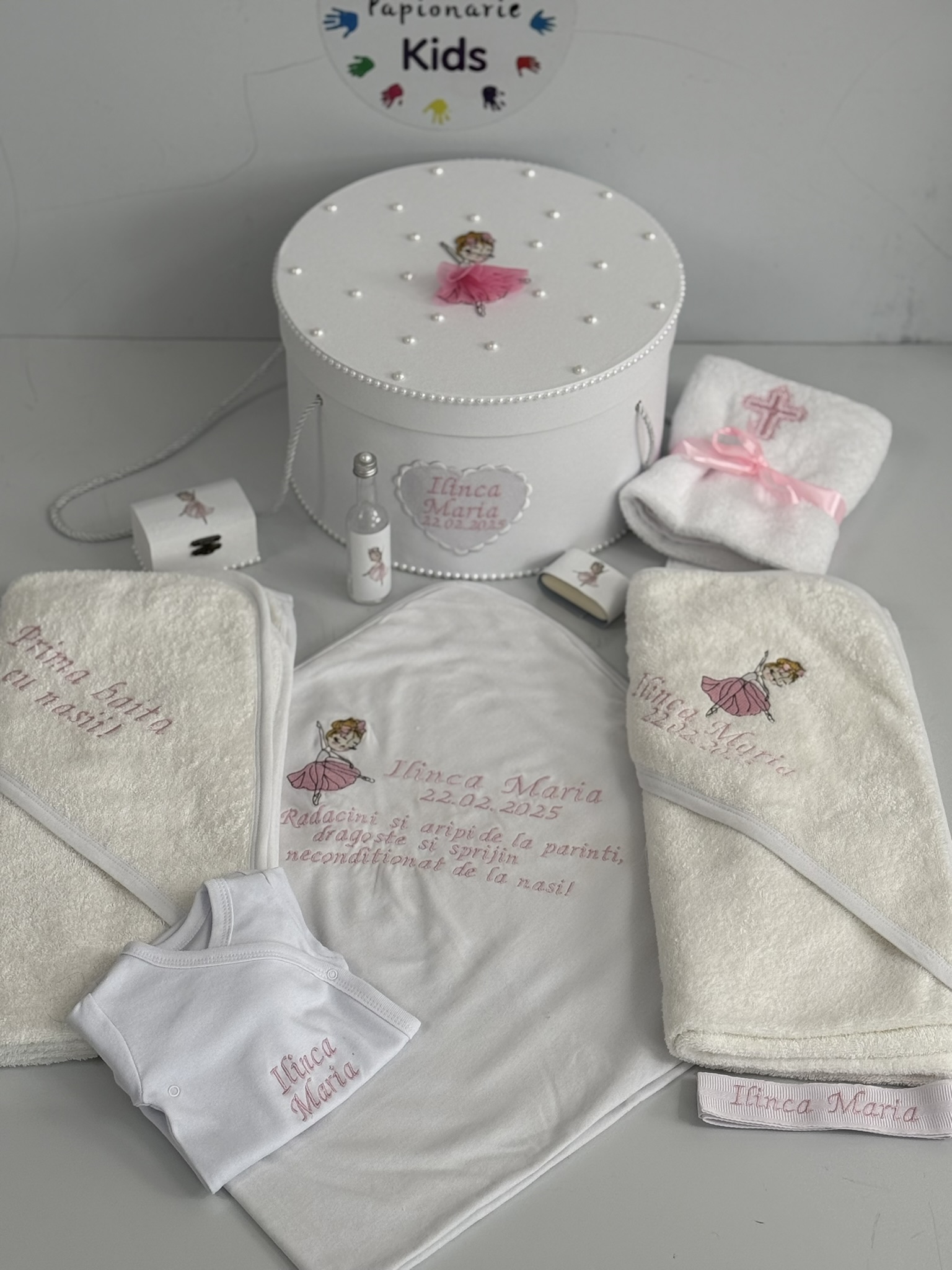 TRUSOUL BEBELUSULUI poate fi personalizat cu numele, data botezului si chiar cu tema aleasa de tine!