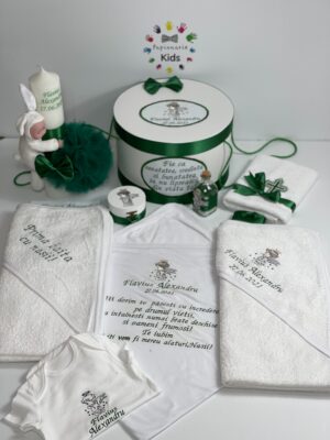 TRUSOUL BEBELUSULUI poate fi personalizat cu numele, data botezului si chiar cu tema aleasa de tine!