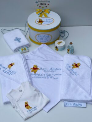 Trusou botez clasic Winnie de Pluș, 8 piese