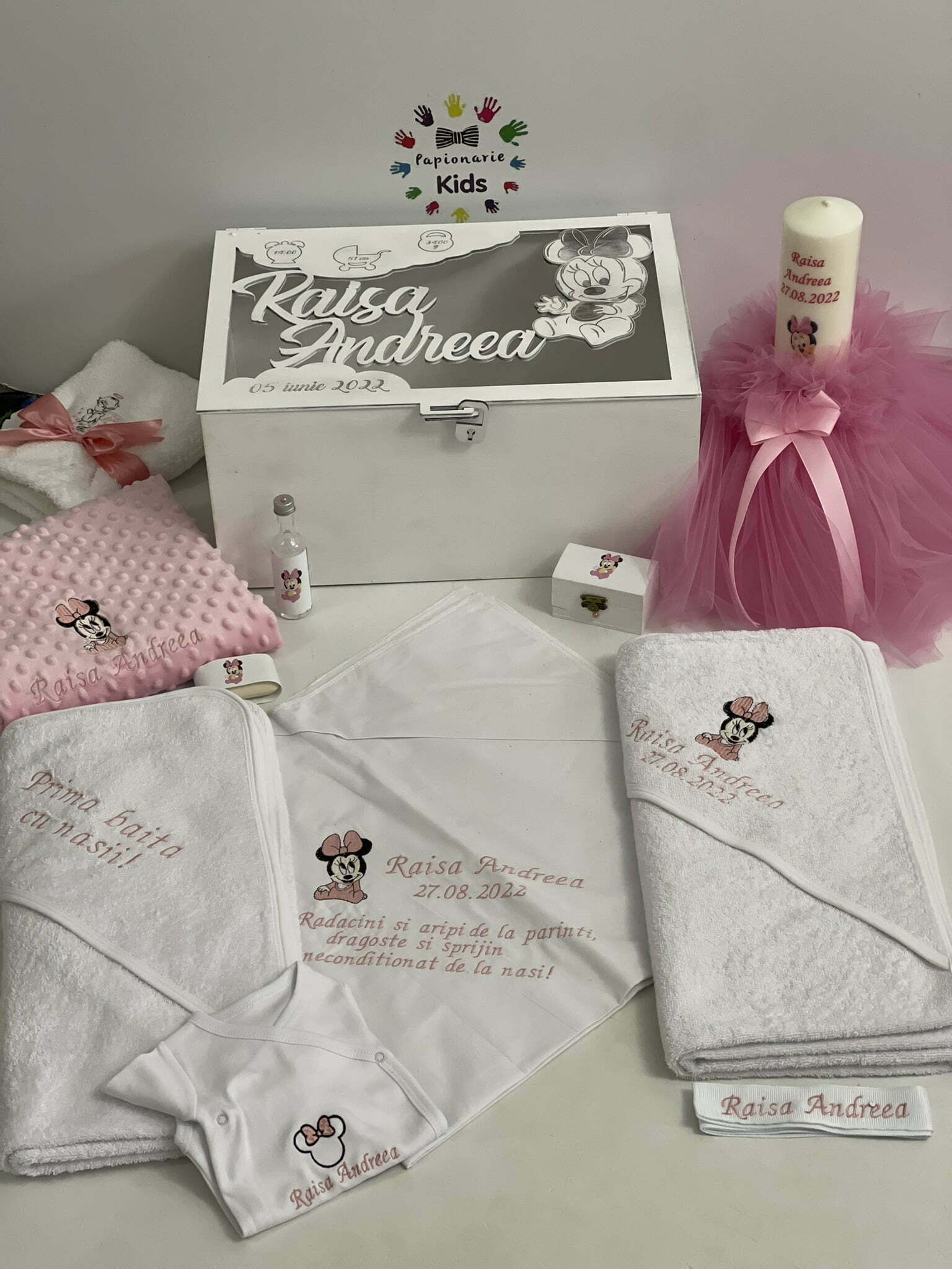 TRUSOUL BEBELUSULUI poate fi personalizat cu numele, data botezului si chiar cu tema aleasa de tine!