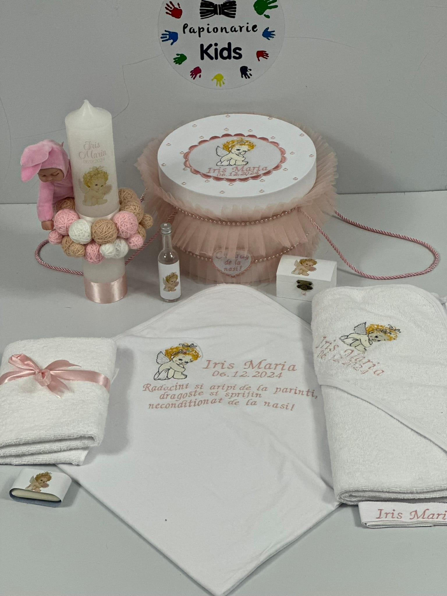 • Cutie rotunda personalizata cu tematica, nume si data (D.26 cm,brodata,dantela,panglica,etc)