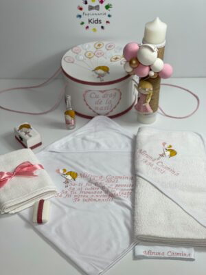 - Cutie rotunda personalizata cu tematica, nume si data (D.26 cm,brodata,dantela,panglica,etc)