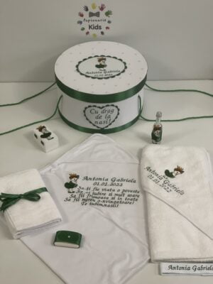 • Cutie rotunda personalizata cu tematica, nume si data (D.26 cm,brodata,dantela,panglica,etc)