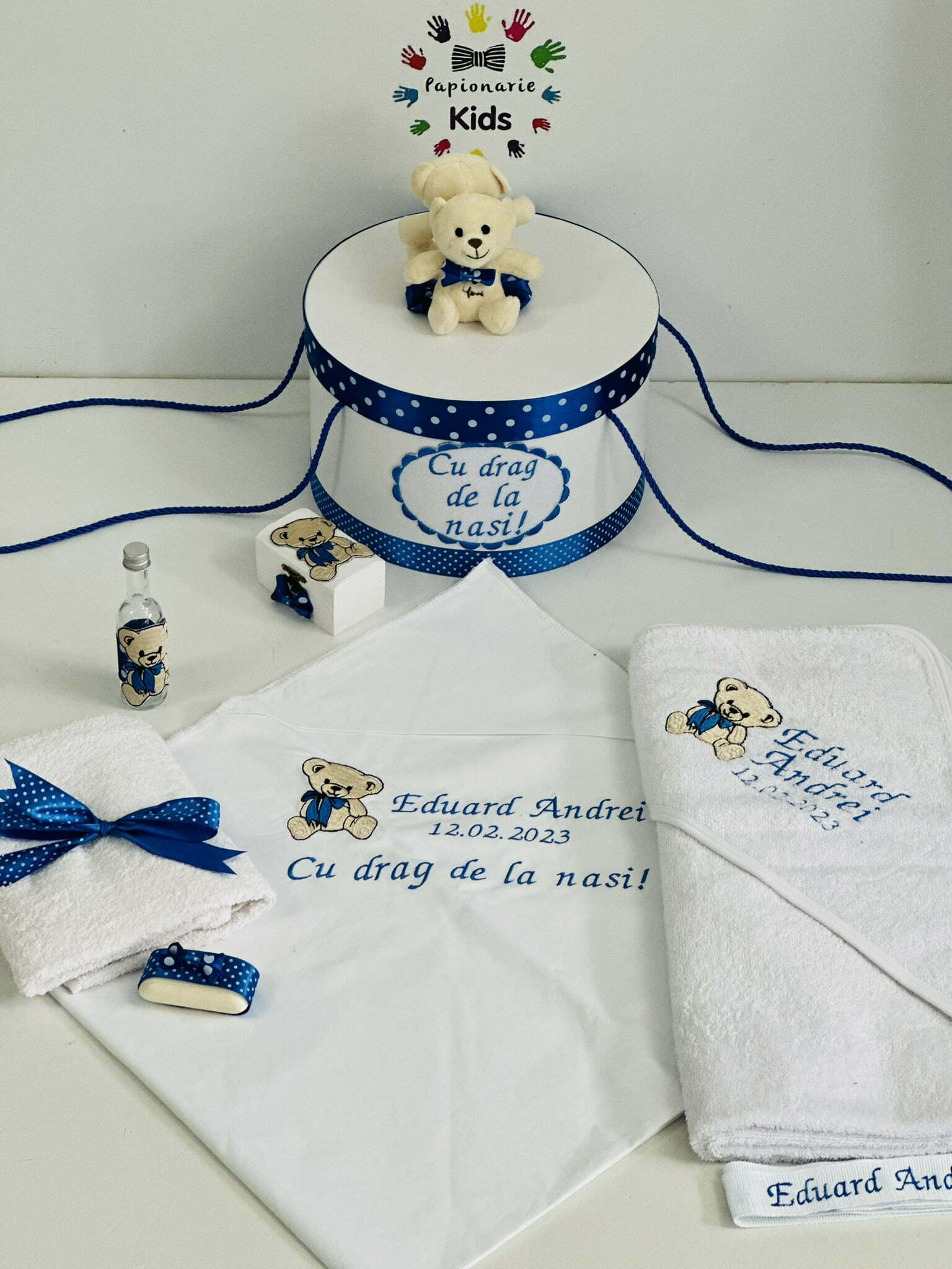 • Cutie rotunda personalizata cu tematica, nume si data (D.26 cm,brodata,dantela,panglica,etc)