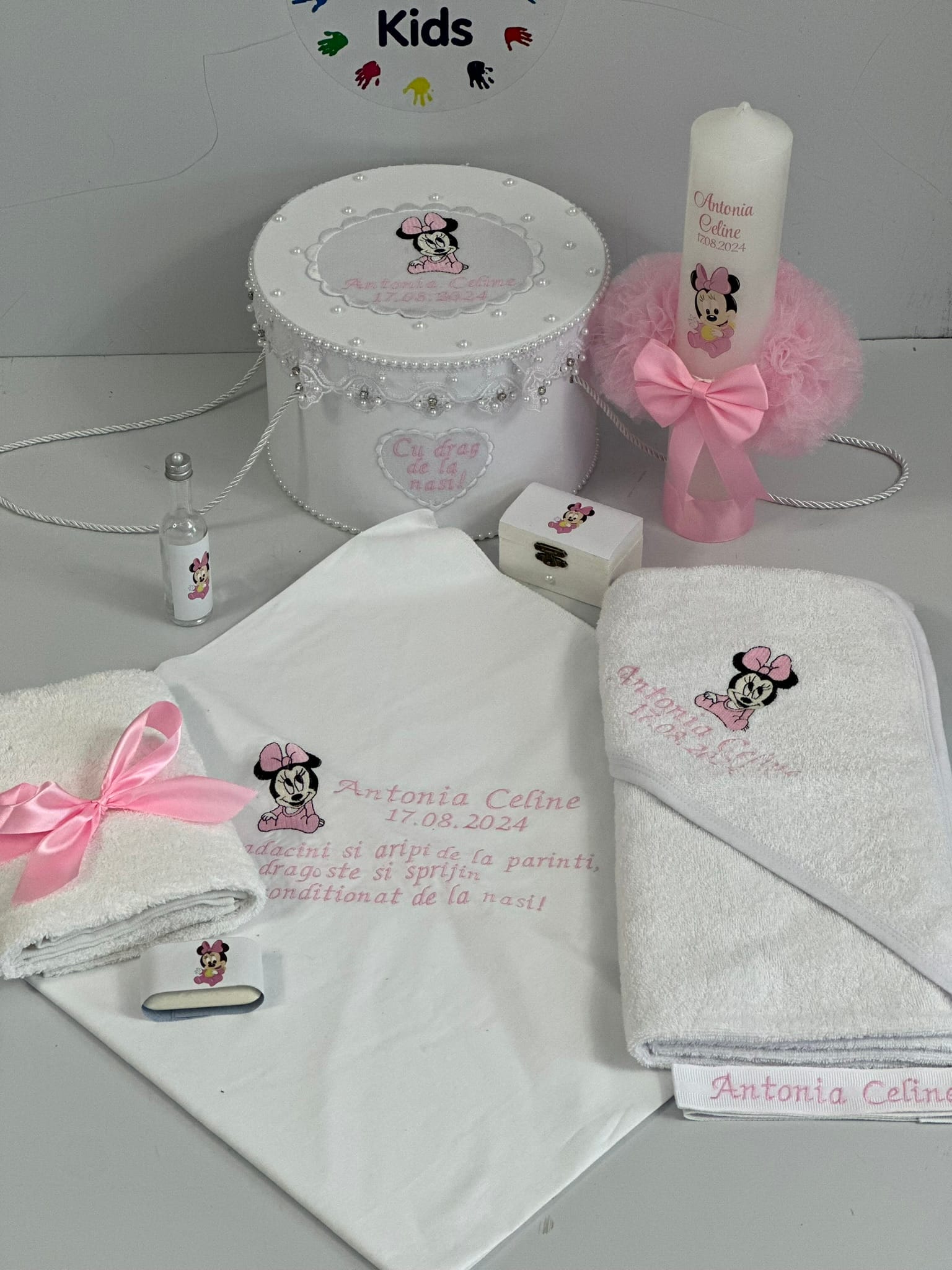 • Cutie rotunda personalizata cu tematica, nume si data (D.26 cm,brodata,dantela,panglica,etc)
