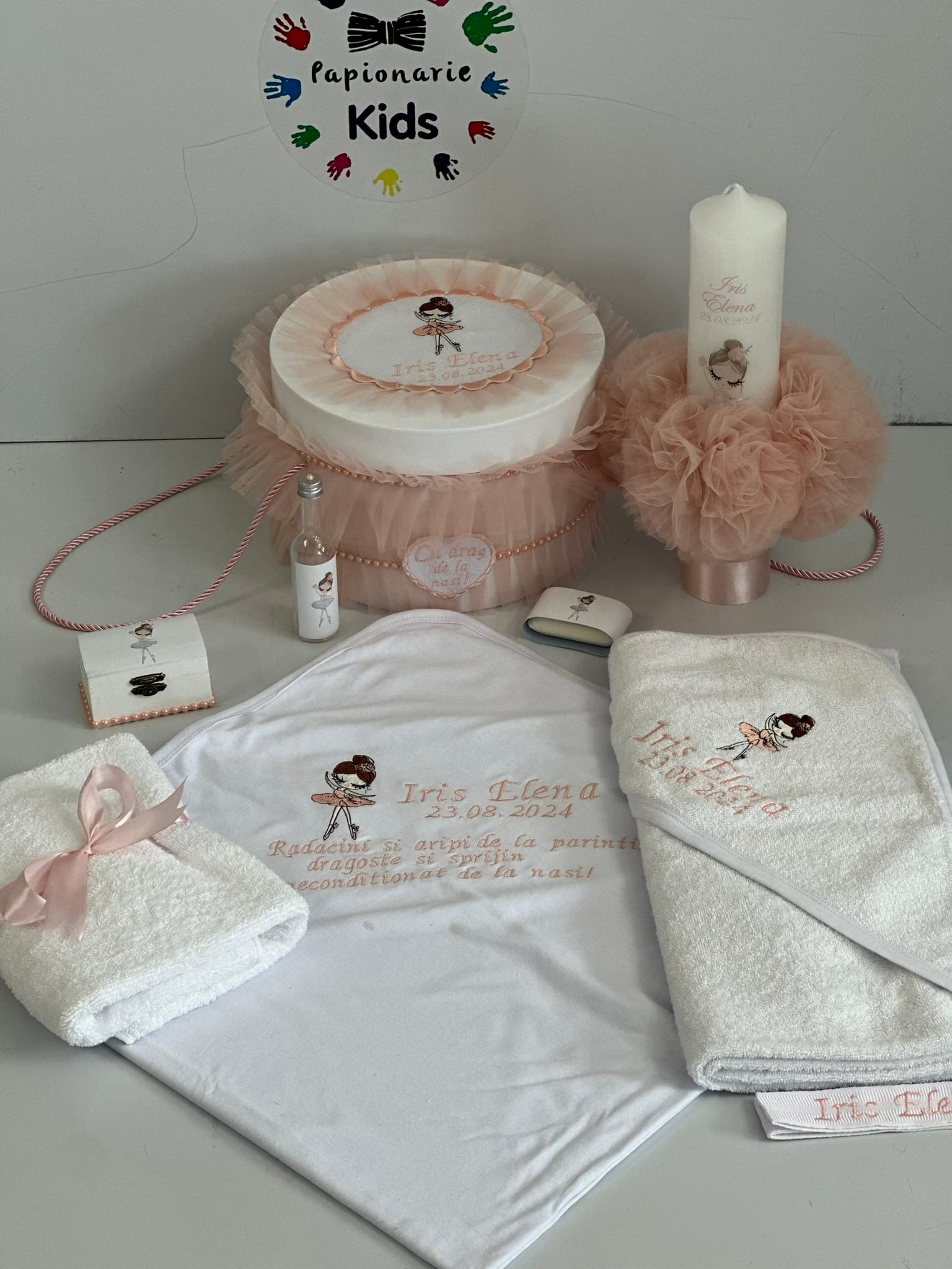 • Cutie rotunda personalizata cu tematica, nume si data (D.26 cm,brodata,dantela,panglica,etc)