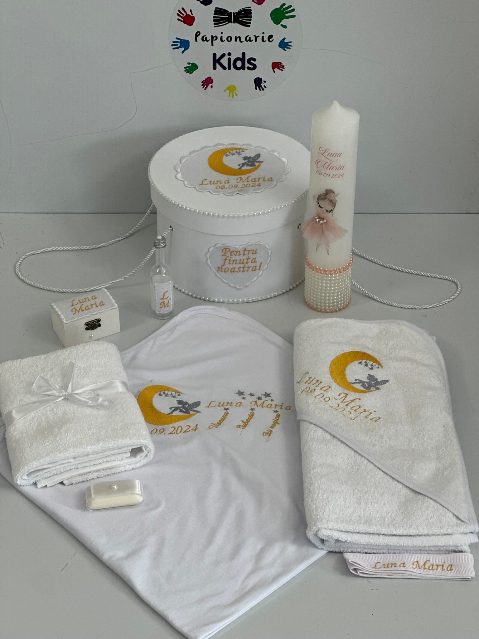 • Cutie rotunda personalizata cu tematica, nume si data (D.26 cm,brodata,dantela,panglica,etc)