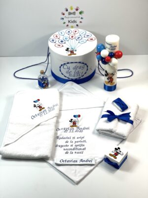 Trusou botez silver Baby Mickey, contine 8 piese: