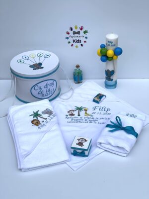 TRUSOUL BEBELUSULUI poate fi personalizat cu numele, data botezului si chiar cu tema aleasa de tine!