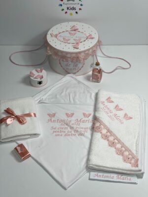 - Cutie rotunda personalizata cu tematica, nume si data (D.26 cm,brodata,dantela,panglica,etc)